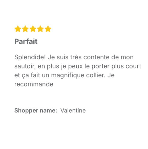 Vos avis sont notre plus belle vitrine. Chaque bijou et chaque sac raconte une histoire, et lire vos retours nous remplit de gratitude. Merci pour votre confiance et pour toutes ces belles paroles qui font briller notre univers encore plus fort ! ⭐️